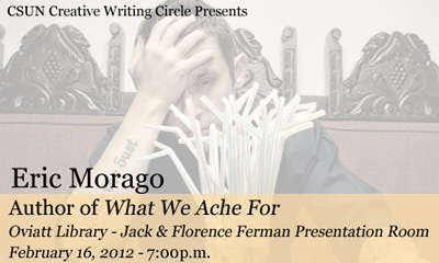 The CSUN Creative Writing Circle Professional Development Committee presents author Eric Morago. Eric is a Pushcart Prize nominated poet, associate reviewer for poetix.net, poet-in-residence with California Workforce Association, and teaches workshops for Red Hen Press’ Writing in School’s program. He will be reading from his poetry, fiction and spoken word work and will be answering questions about writing and publishing afterwards. This event is open to the public.