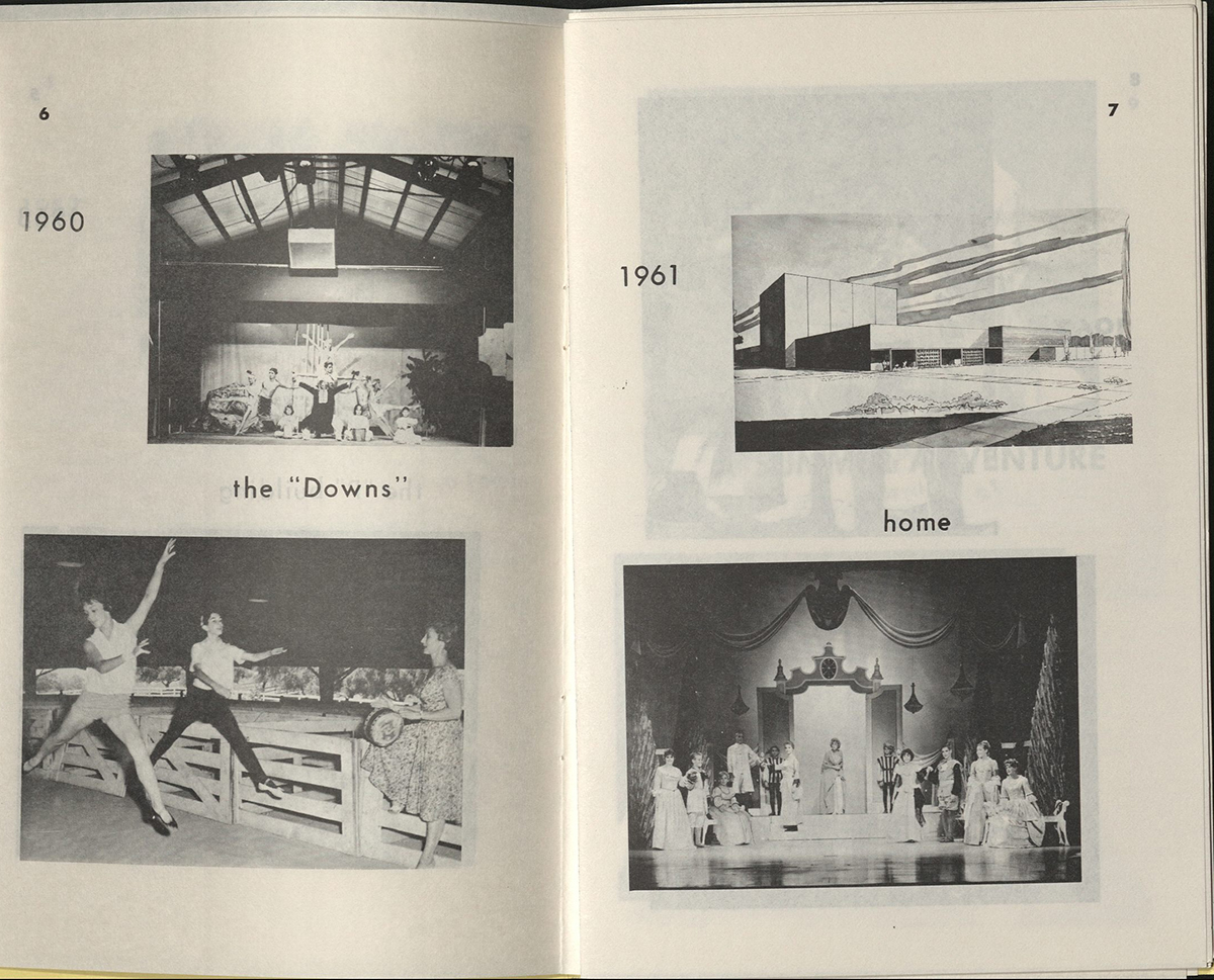 While the Workshop has been hosting its lessons and shows in Nordhoff Hall for most of its life, the first TADW season was held in a tent. The following two seasons saw students set up shop in the Art Department. Then, in the fourth year, students rehearsed in barns at the former horse racing and event space Devonshire Downs (now occupied by Medtronic on Devonshire and Zelzah). Nordhoff Hall (formerly the “Speech Drama Building”) completed construction in 1961, and TADW has operated in its classrooms and theatres ever since.