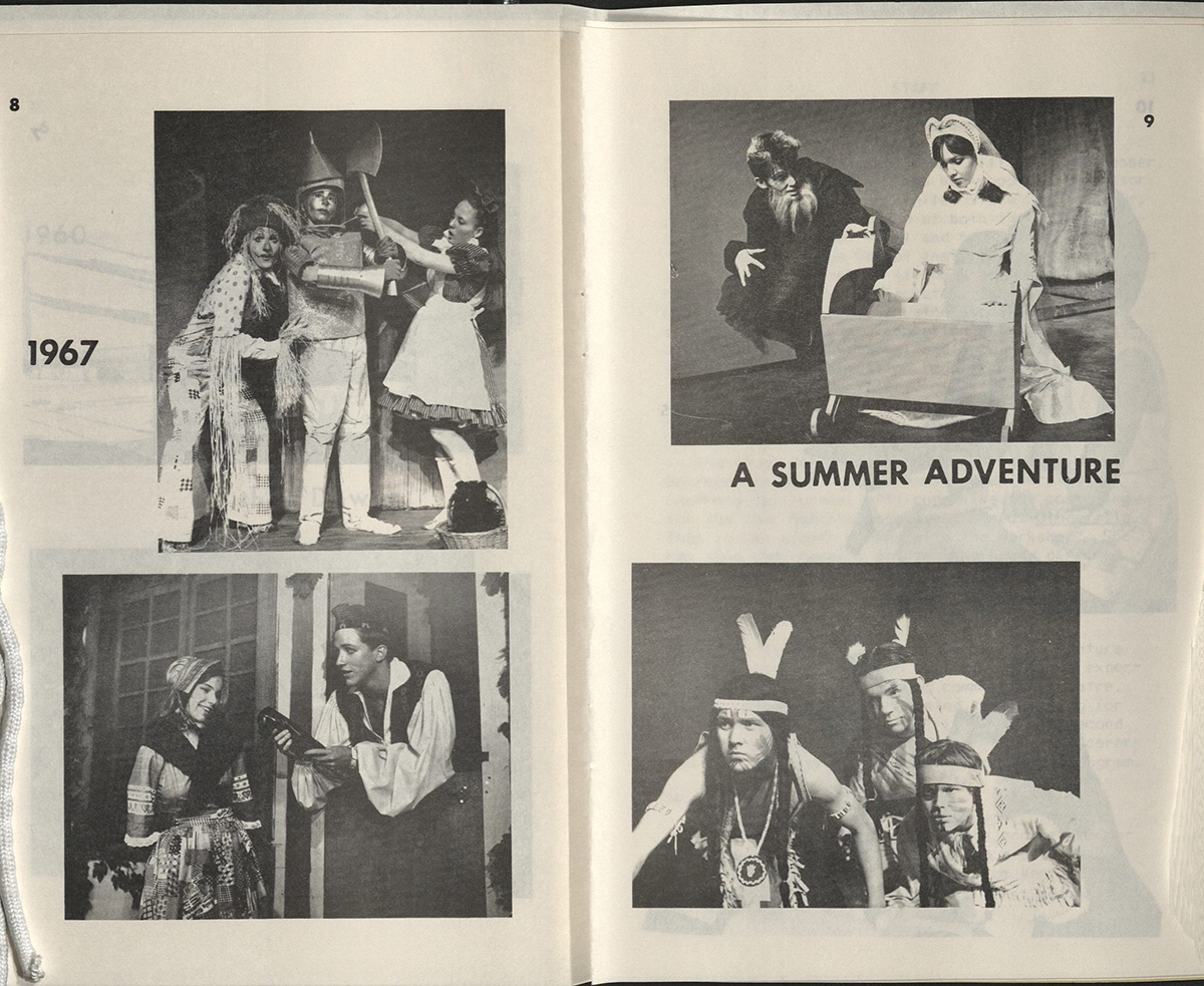 Students of the 25th and 45th season similarly took on the roles of Dorothy and her friends. Older program designs have a storybook feel, appearing hand-drawn.
