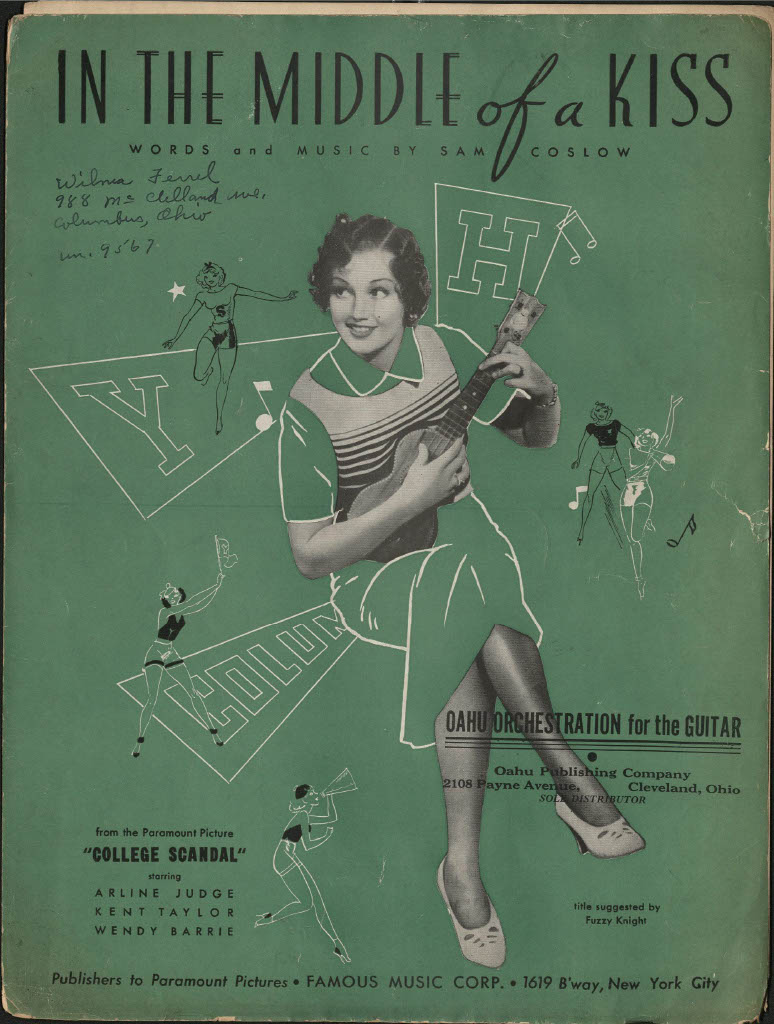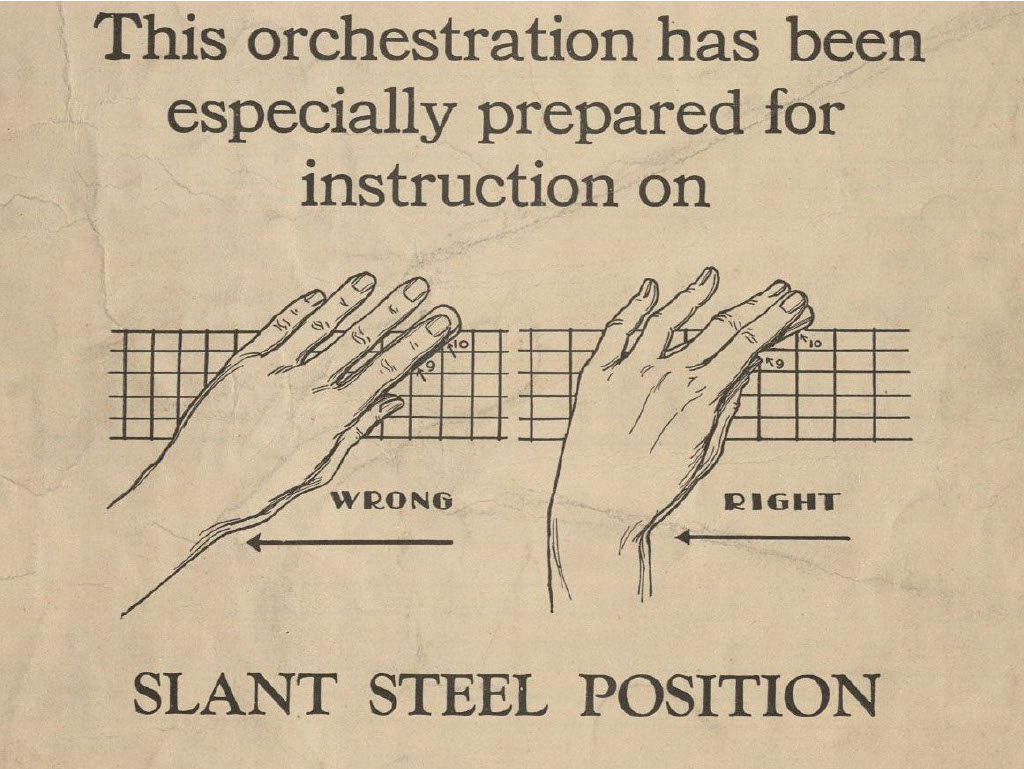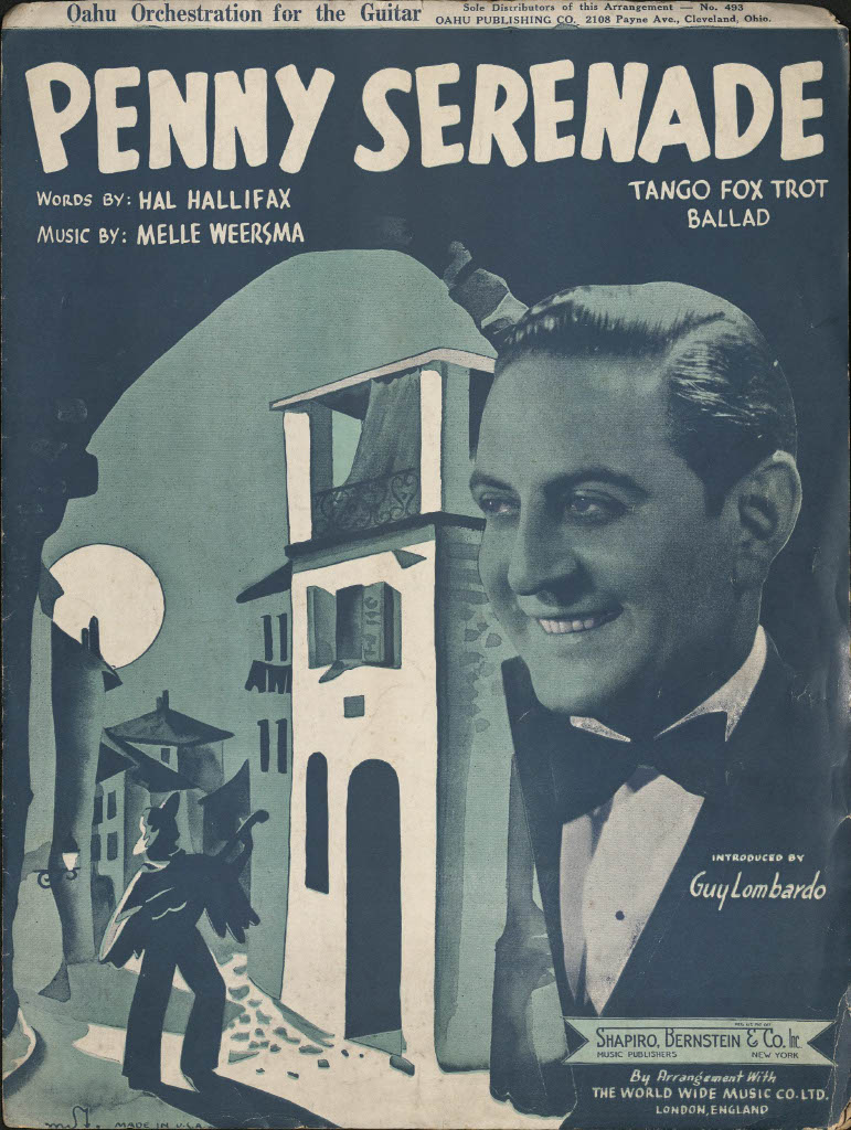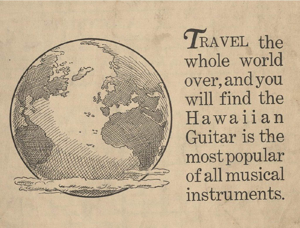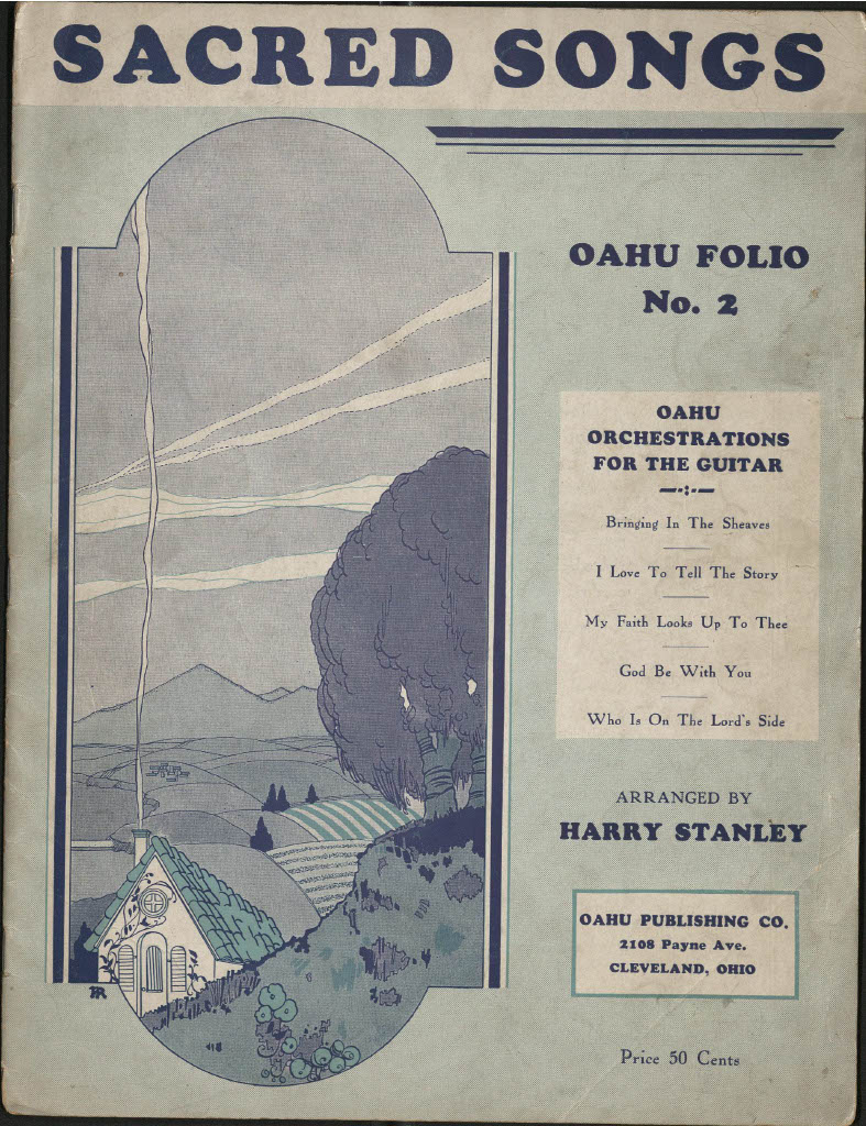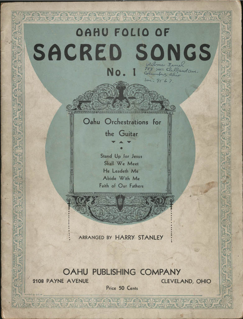 The first commercially successful guitar was not intended for rock, pop, jazz, or even classical music. Instead, the Rickenbacker A-22 Electro “Frying Pan” Guitar was designed in 1931/32 and patented in 1937 by George Beauchamp to capitalize on the popularity of so-called “Hawaiian” music. In the 1920s and 1930s, this style of music featured a ‘Hawaiian Steel’ (today called ‘lap-steel’ or just ‘steel’) guitarist as the lead instrumentalist. The guitarist would rest the instrument horizontally across the lap and fret notes by holding a bar of steel lightly atop the strings. The Rickenbacker Electro solved a problem for these ‘steel’ players who needed to project their sound above the other ensemble members, providing amplification through a magnetic coil pickup. Today, lap-steel guitar playing still thrives in different genres, but its historical importance in the development of the electric guitar is often overlooked. The Wilma Ferrel Collection houses hundreds of pages of sheet music and instructional material for lap-steel guitar and therefore constitutes a valuable resource for musicologists and historians interested in this transformative period of music history.