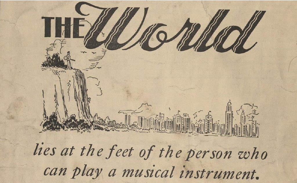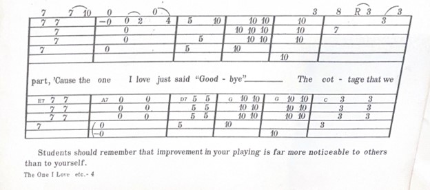The aphorisms inscribed on nearly every page of Oahu Publishing Company sheet music vary in subtlety. For example, in “The One I Love Just Said Goodbye” an aphorism encourages the student in a disinterested display of goodwill declaring: “Students should remember that improvement in your playing is far more noticeable to others than to yourself.” Many of the pithy statements adorning the sheet music are similarly encouraging, but others dabble with a more demanding tone. The bottom margin of a page of music for “The Old Oaken Bucket”, reads “You are on the road to SUCCESS - - do not fall by the wayside - - No one likes a quitter.” With the aphorisms navigating a wide range of emotional valences, it can be easy to miss the less subtle marketing on some pages.